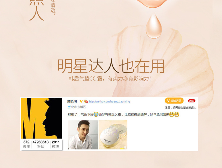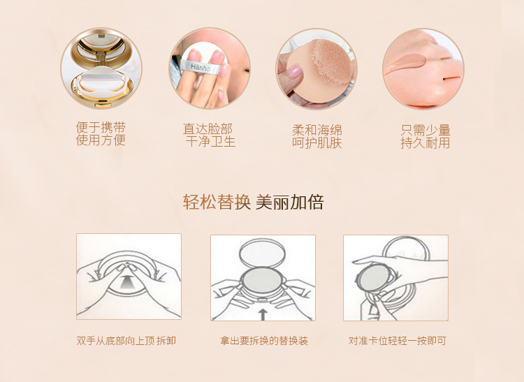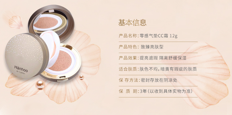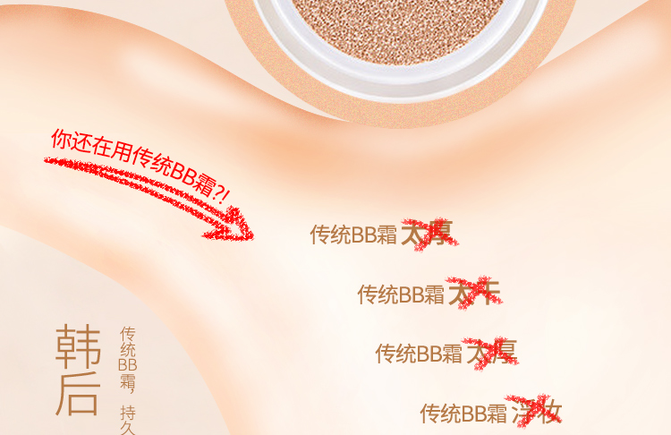 韩后气垫CC霜 BB粉底液 零感裸妆 轻薄自然 遮瑕隔离美白保湿
