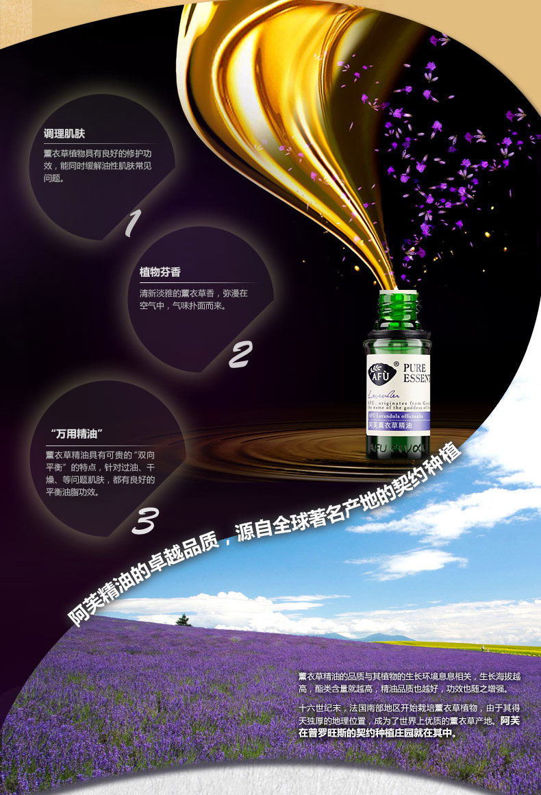 阿芙薰衣草精油10ml 天然植物香薰护肤熏衣草单方纯精油